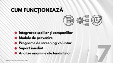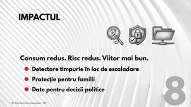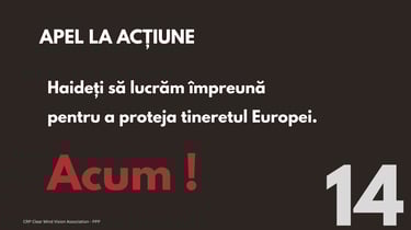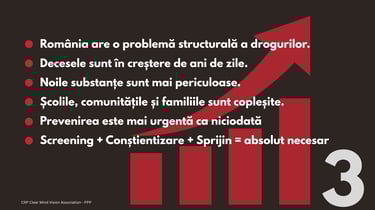 Fie că ești părinte, cadru didactic, angajator sau lider al comunității, joci un rol esențial în construirea unui viitor mai sigur. Împreună, putem crea o cultură a prevenirii și a responsabilității. Viziunea CRP Clear Mind: Prevenire. Conștientizare. Responsabilitate.